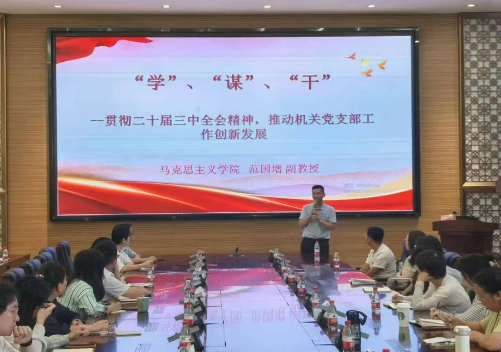 在学校,马院宣讲团先后与中共kaiyun开云官方网站机关委员会、机关一党支部、机关二党支部、机关三党支部、机关四党支部、机关五党支部、机关六党支部协同开展专题培训班。期间,马院宣讲团专家范国增副教授作《“学”“谋”“干”——学习贯彻党的二十届三中全会精神,推动机关党支部工作创新发展》专题宣讲,朱青山副教授作《深刻领会党的二十届三中全会精神 以新质生产力推动高校数字化转型》讲座,贾岚教授作《学习贯彻党的二十届三中全会精神 加速推进中国式现代化在广东的生动实践》主题宣讲,推动全会精神深入人心、落地生根,助力机关党支部工作创新发展。