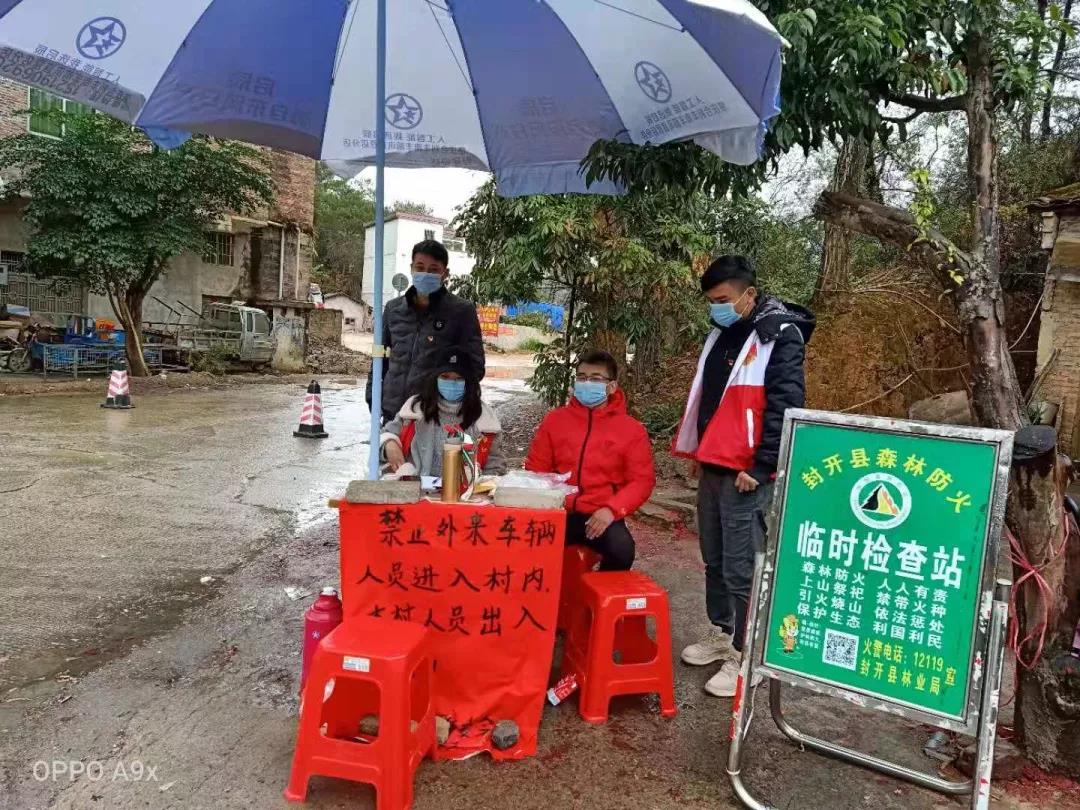 2月2日至2月3日在广东省肇庆市封开县莲都镇进行志愿服务,登记外来人员及车辆。天气变冷,她和其他志愿者们一样,用擦手来取暖。附近的村民看见了,热心地为志愿者们送上热乎乎的金银花茶。镇书记也前来问候,对志愿者们表示感谢,为他们的坚守表示赞赏。