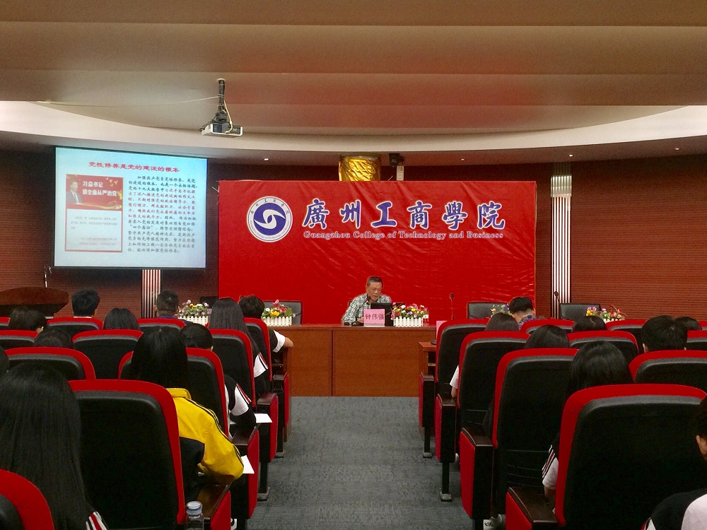 【本网讯】2018年4月20日下午,我院党委书记钟伟强为第5期发展对象党校培训班学员作专题报告。本次报告会在花都区教学楼7楼报告厅举行,由外语系党总支学生党支部书记陈钧议主持,花都校区本期党校发展对象学员参加了本次报告会。