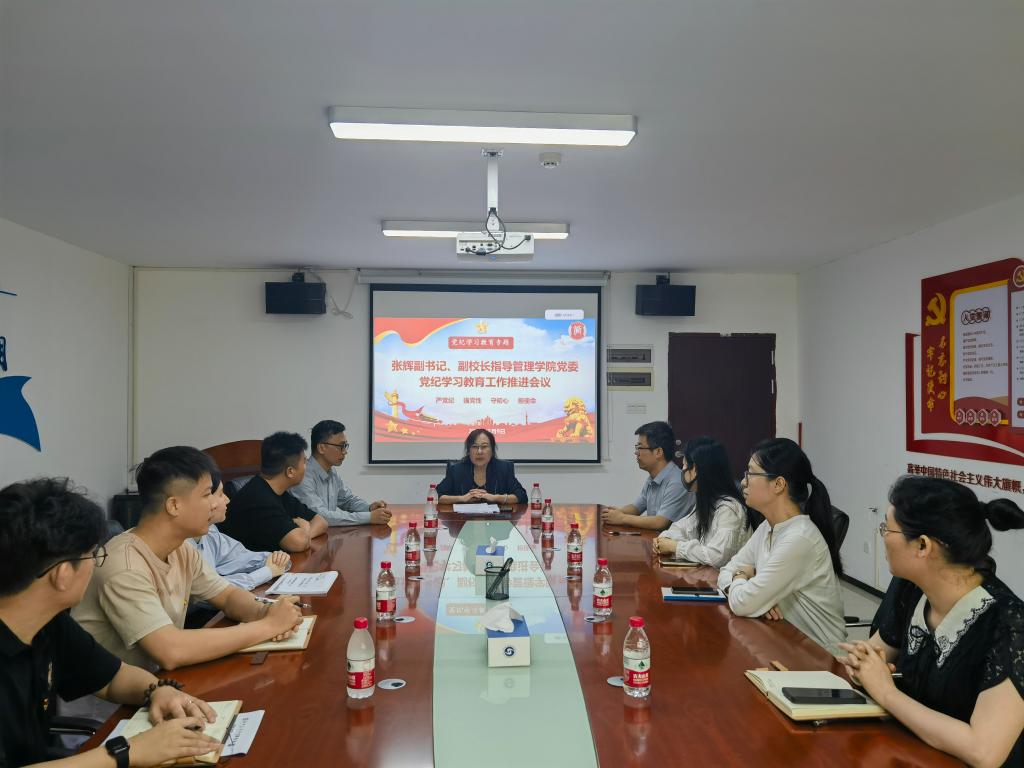 【本网讯】5月9日,校党委副书记、副校长张辉深入工作联系点管理学院,指导开展党纪学习教育,与管理学院党员代表共学共研、座谈交流。管理学院党委书记、院长乔鹏亮及学院党政领导班子成员、党委委员参加座谈。