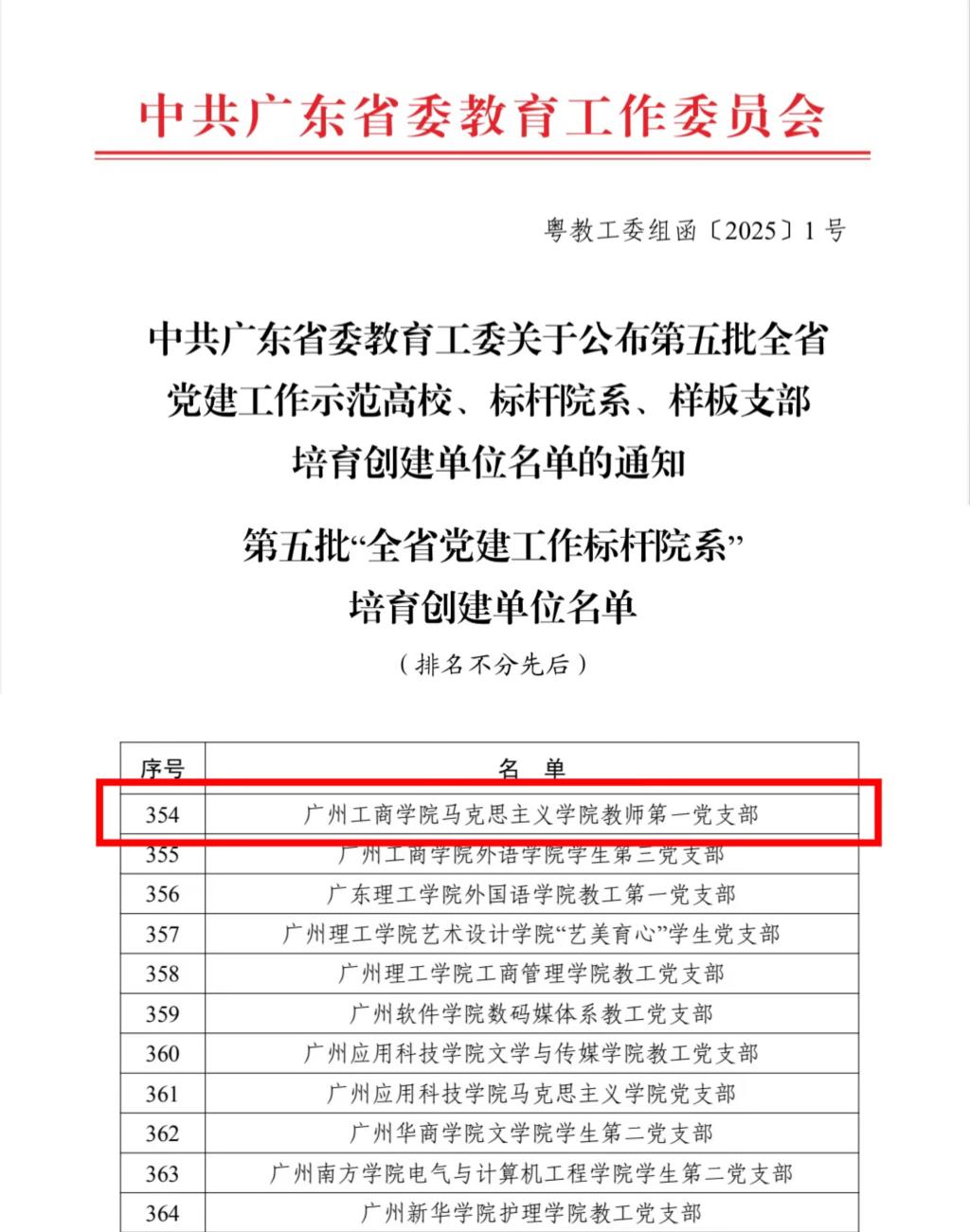 近日,中共广东省委教育工委公示全省第五批新时代高校党建示范创建和质量创优工作评审结果,kaiyun马克思主义学院教师第一党支部入选“全省党建工作样板支部”培育创建单位。这是马院继教师第二党支部后又一次获得该项目立项!