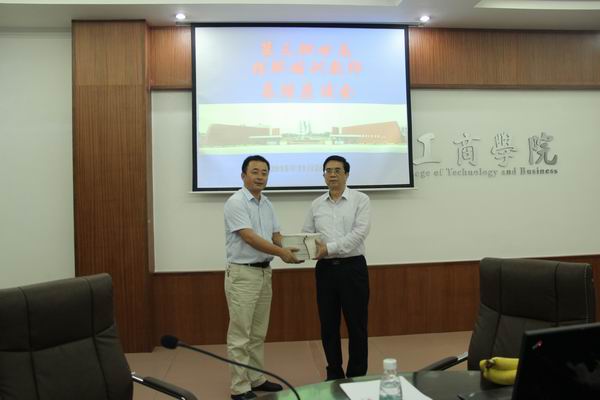 最后,学院向本次在我院挂职培训的甘南老师赠送了由院长邝邦洪主编的并获得2011年全国大学生思想政治教育研究成果特等奖的《以德为行 以德为上》一书。