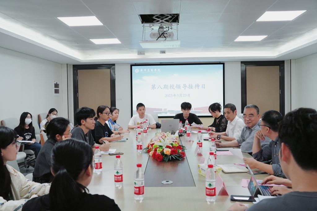 3月23日下午,三水校区第二综合楼、花都校区第三综合楼智慧课室热闹非凡,由学生工作部(处)和国际教育学院共同组织的校领导接待日活动正在开展。“课堂抽查制如何完善?”、“安排课程能否集中一点”、“希望在校内多开展志愿活动……”接待日活动现场气氛融洽,各学生代表就学校的教育教学安排、宿舍环境改善、学生活动和食堂管理等多方面问题向校长和书记提建议、表意见,表达自己的看法。书记、校长认真听取学生困惑和建议,并适当给予肯定和解疑,现场师生交谈热烈、互动频繁。