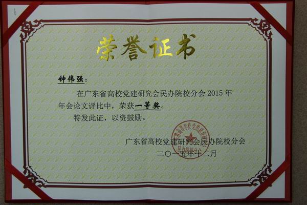 本次民办高校党建研究分会共收到42所高校选送的139篇论文,经过专家严格评审,评选出一等奖论文5篇,二等奖论文20篇,三等奖论文30平,优秀论文若干。年会主要由研究会工作报告、党建工作、优秀论文交流及优秀“微党课”展示等环节组成。我院党委书记、副院长钟伟强同志撰写的论文《互联网+“五进”的应用型人才培养模式探索》喜获2015年广东省高校党建研究会民办院校分会年会论文“一等奖”,并在本次大会上作优秀论文发言。钟书记与与会代表主要分享了四方面内容:一是正确认识“互联网+”和了解“五进”的内涵;二是如何在教育领域实现互联网+素质教育,实现互联网+“五进”;三是实现互联网+“五进”渠道的探索,并引用我院一站式服务中心网络平台、团委微信订阅号为案例进一步举证说明;四是推动互联网+“五进”的本质是通过“五进”促进应用型人才培养,并列举了我院开展活动以来取得的主要成果。分享汇报受到了与会代表的一致赞同和充分肯定。