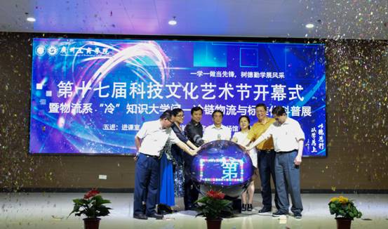 【本网讯】2017年5月11日下午,kaiyun开云官方网站第十七届科技文化艺术节开幕式暨物流系“冷”知识大学问——冷链物流与标准化科普展在我院三水校区学生活动中心6楼学术报告厅举行。学院院长邝邦洪教授,学院党委书记、副院长钟伟强同志,学院副院长吴宏岳、朱特威、乔丽媛、易露霞,广州拜尔空港冷链物流中心有限公司董事长王宏,经理任锦辉、司新宇,花都区质监局标准化科科长顾虹以及学院各系(部)主任,各职能部门负责人出席了本次开幕式。