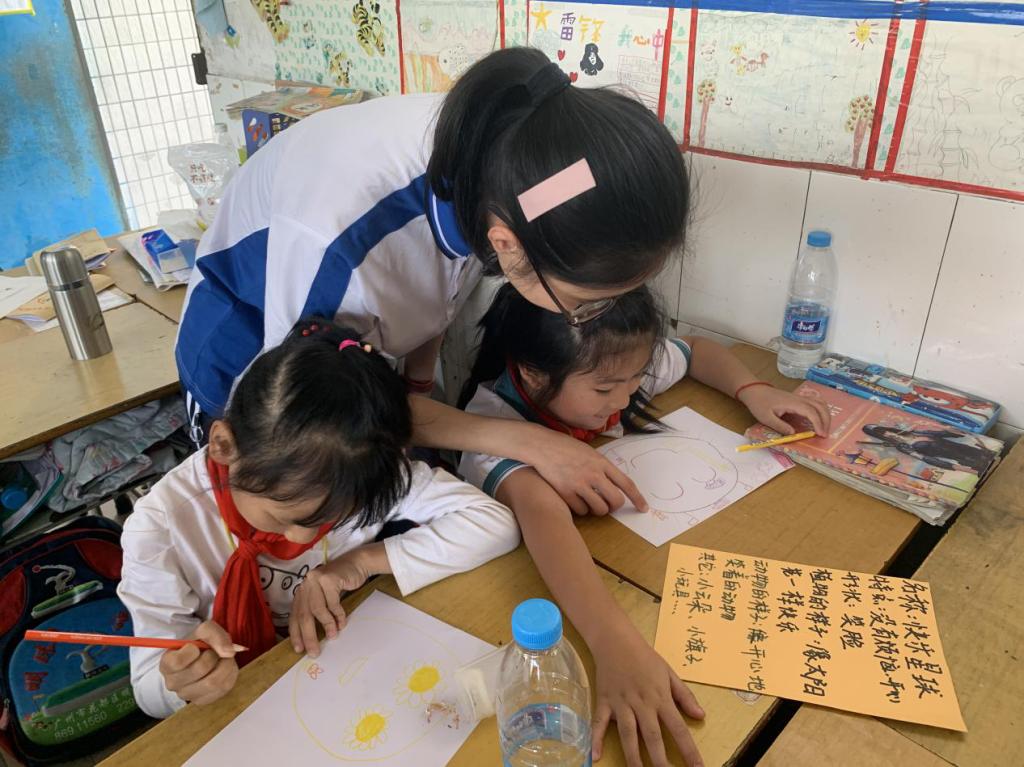 本次义教课堂以“我们的星球”为课题,让小朋友们描绘自己心目中的星球。志愿者们将彩色铅笔和纸张、彩色橡皮泥发放给每一个小组,让小朋友们进行绘画和捏造星球。