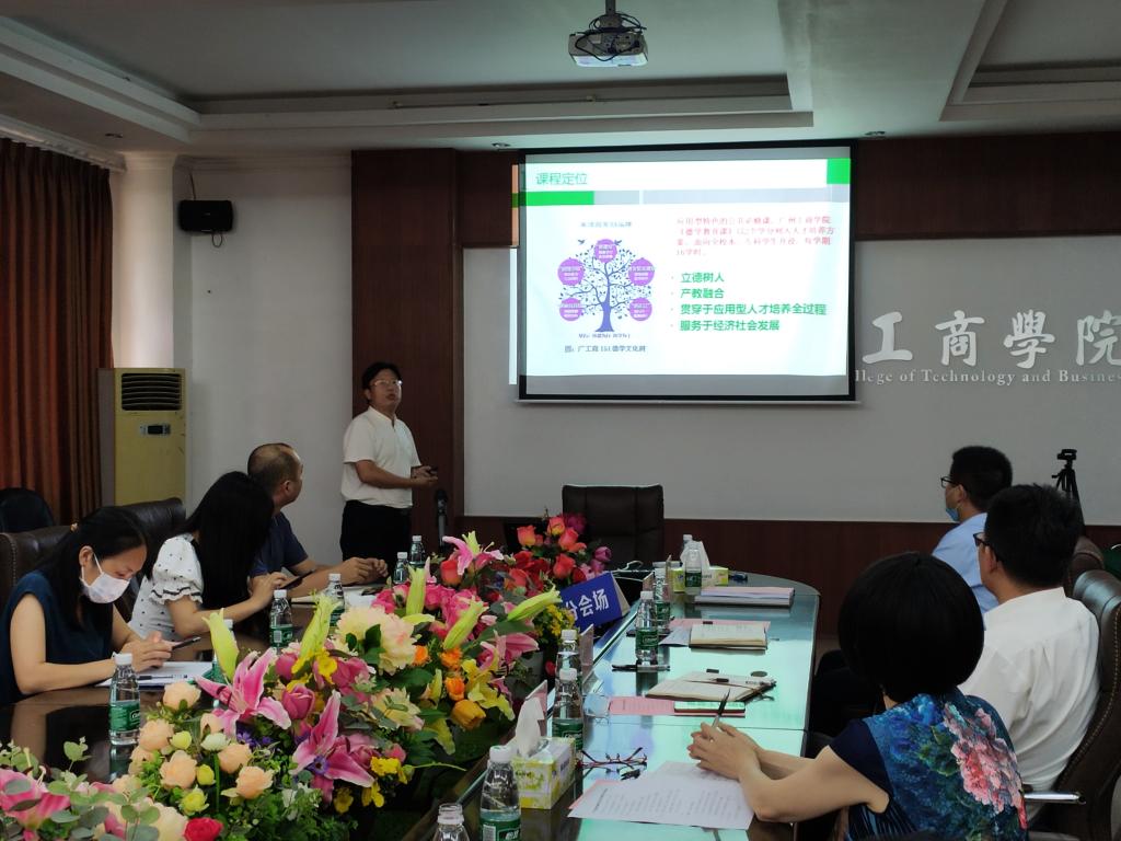 易班发展中心耿晓雯老师汇报了广东省网络文化工作室培育项目的建设现状、发展情况,并分享了项目未来发展的设想。学生处处长黄鹏对广东省教育教学改革项目《基于“五进”的应用型高校德学课程体系构建》进行了中期汇报。在汇报中,学生处处长黄鹏从课程定位、设计、实施、评价以及展望五个方面来介绍项目的开展情况,充分探讨以德为行、以学为上的教育理念,推行“五进”教育实践活动,培养学生六大核心能力。黄处长强调要加强教学队伍建设、课程师资的多部门协同以及校企教师合作,提升课程的专业度及系统化程度,提出课程未来要融合、混合现实等技术发展的展望。产业学院副院长任锦辉提出,产业学院是重视产教融合的平台,强调应用型大学应该培养学生的职业道德教育,使学生更好的适应社会。校企合作中心干事刘强老师提出,企业重视落地实施,可选择部分校企合作的基地进行德学教育,委派学校德学讲师到企业去讲授德学理念,以宣传德学思想。
