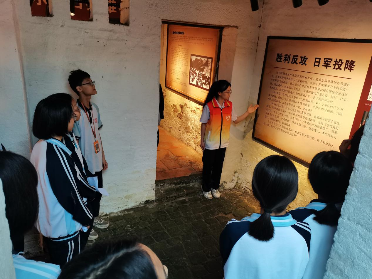 星火讲解队怀揣着对革命先烈的敬仰之情,精心策划了此次服务内容,确保中学生们能够深入重温三水区的革命历史、感受红色文化内涵。虽然活动当天阴雨不断,但星火讲解员依然热情高涨,他们指引中学生们一步步走进峥嵘岁月里的战斗故事中,回顾三水区波澜壮阔的抗战历史,了解到中共三水县工委、县委的成立和在抗日战争中的英勇斗争和无私奉献,深刻感受到革命先辈顽强拼搏的奋斗精神、如烈火般的革命情怀,为民族的解放和人民的幸福,用鲜血和生命谱写了一曲曲感天动地的英雄赞歌。这些故事不仅让青少年们的灵魂受到了深深地触动,更激发了他们勇担民族复兴大任、做新时代的奋斗者的使命担当。
