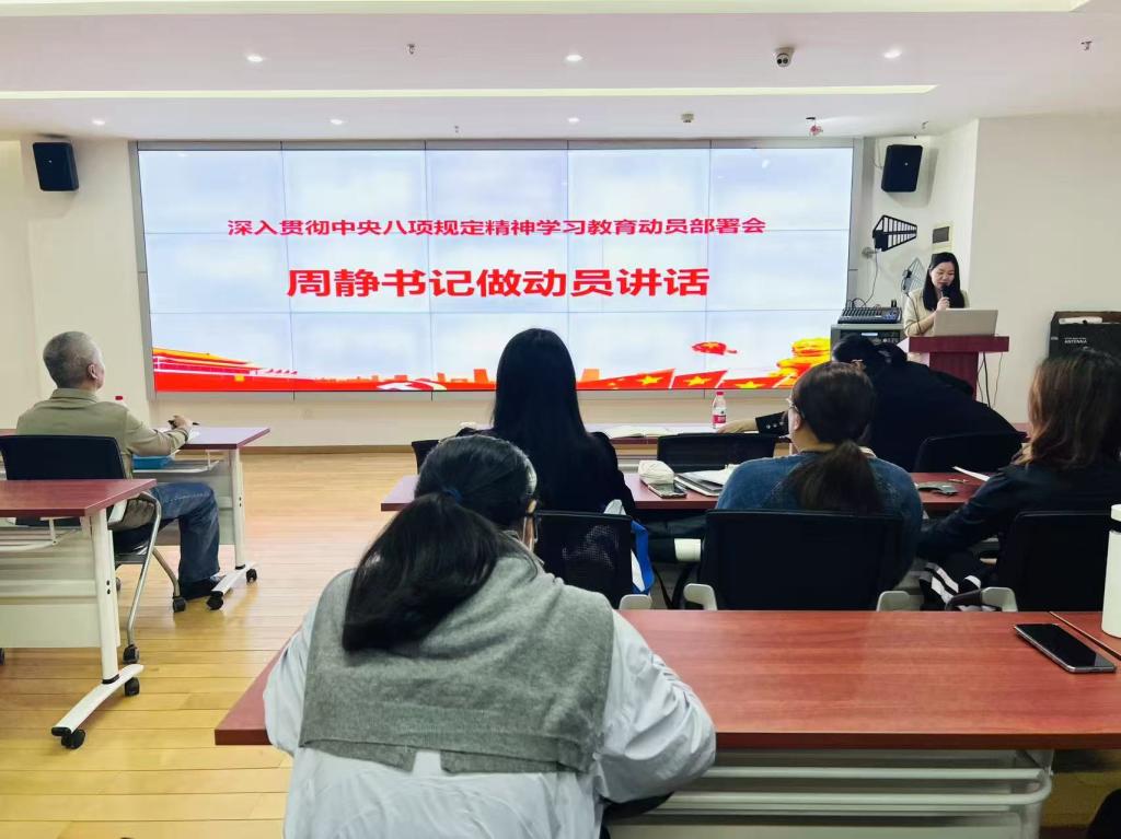 谭丽婷传达了学校党委《深入贯彻中央八项规定精神学习教育的实施方案》的安排,要求开展深入贯彻中央八项规定精神学习教育是巩固深化主题教育和党纪学习教育成果、纵深推进全面从严治党的重要举措,并明确做好学习引导、深入查摆问题、加强立查立改、坚持开门教育等工作要求。