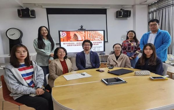 在讲座的尾声,本科生科创团队与郝原悦博士进行了交流。房璐同学作为代表,分享了本科生科创团队正在进行的“基于华东师大《语音能力评测量表》的新闻播报语音学习实证研究”项目,郝原悦博士对该项目进行了高度认可,并从伦理角度提供了建议,同学们受益匪浅。对梁瑞雪团队的“语音pronunciation A+软件设计与平台开发”科创项目,郝原悦博士对同学们将语言评测与计算机软件相结合的创新能力进行了肯定,同时也与同学们交流了自己的想法。认为利用人工智能进行语言测评与反馈不应该局限于单音的发音,可以结合市面上现有产品中的不足,对语音的重音和语调测评进行尝试,在技术允许的前提下,利用语言学专业的理论优势,设计出一套规范、有效、专业的测评与反馈模式,真正将语言测试的核心与科技智能相结合。