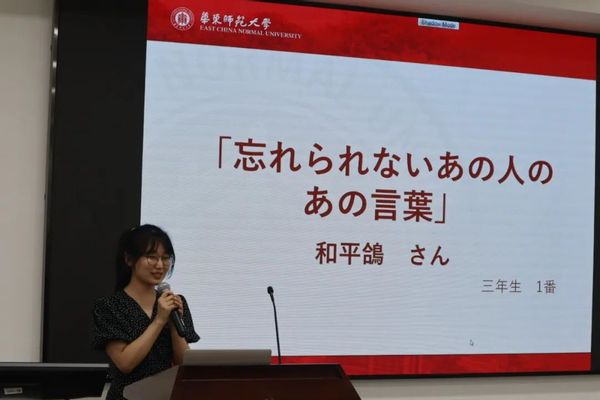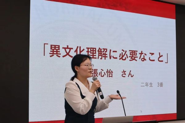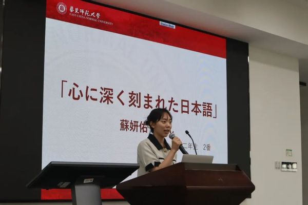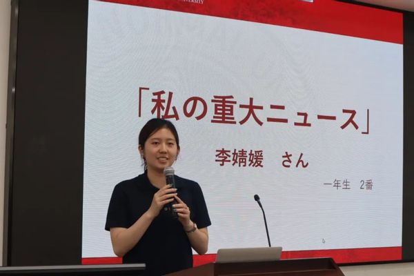 苏妍佑同学的演讲主题是“心に深く刻まれた日本語”。苏同学表示日语的“一期一会”深深地触动了她,结合自身经历分享了要以“一期一会”的心态面对生活中的人和事。