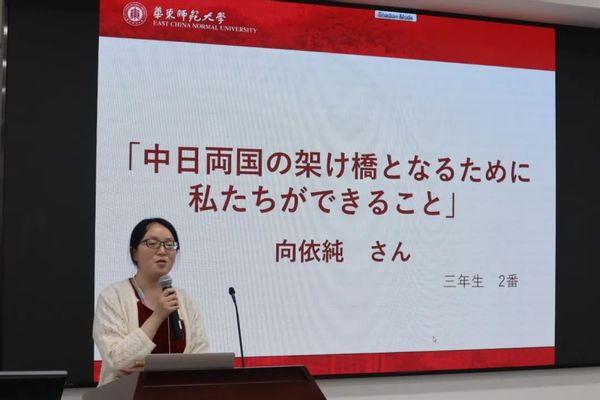 向依纯同学演讲的主题是“中日両国の架け橋となるために私ができること”。向同学围绕日语学习经历展开,她认为中日交流中,自己能做的事就是去掉刻板印象,切身地进行友好交流,才能做一名中日两国友好的搭桥人。