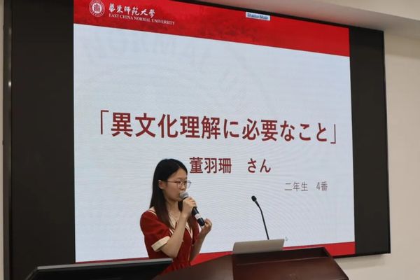 董羽珊同学结合自己在日本旅游时问路的经历,分享了自己的异文化体验,她表示跨文化交流中最重要的是抱有积极的态度,真诚地与人交流,不要害怕犯错。