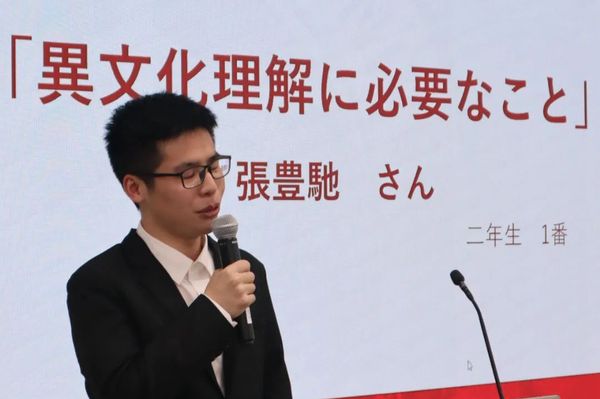 2021级4位同学的演讲题目是“刻骨铭心的日语(心に深く刻まれた日本語)”、“异文化理解中必要的东西”(異文化理解に必要なこと)。