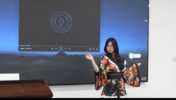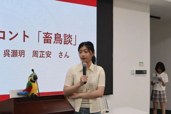 暖场环节中,2022级吴灏玥和周芷安同学精心准备了短剧“畜鳥談” 诙谐幽默,顾欣宜同学带来了人气舞蹈“極楽浄土”。全场的气氛被带动起来,笑声不断,让在座师生再一次体验了日语语言的魅力。