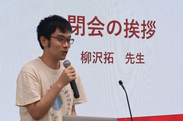 柳泽拓老师致闭幕词,他充分肯定了各位选手的优异表现,对大家能用日语表达自己的想法感到无比欣慰,鼓励同学们继续保持自信,希望在今后的赛事中看到更多同学的身影。