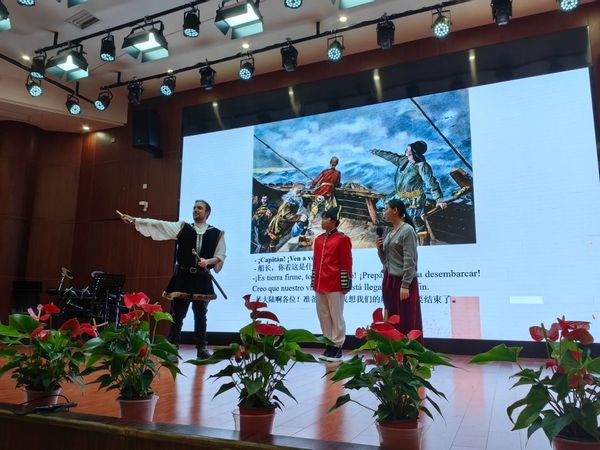 西语外教Guillermo(古烈)与学生表演舞台剧
