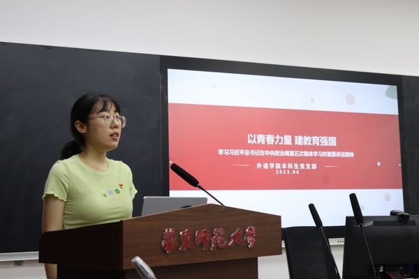2023年6月14日,bwin必赢国际中国官方网站本科生党支部围绕“以青春力量 建教育强国”开展主题教育专题研讨,重点学习了习近平总书记在中共中央政治局第五次集体学习时的重要讲话精神。会议由支部书记侯嫣茹主持。