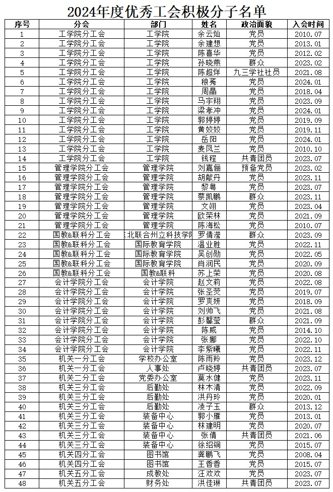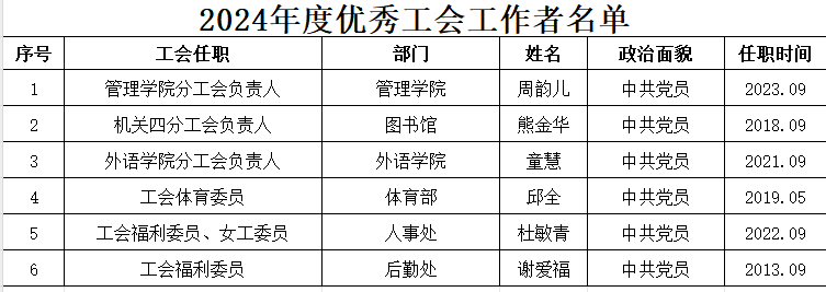 根据《kaiyun开云官方网站工会委员会关于评选2024年度“模范职工小家”“优秀工会工作者”“优秀工会积极分子”的通知》,学校各分工会积极申报“模范职工小家”和推荐了优秀人员名单。经相关部门进行资格审查后,最后确定2024年度“模范职工小家”2个、“优秀工会工作者”6名、“优秀工会积极分子”87名,具体名单公示如下: