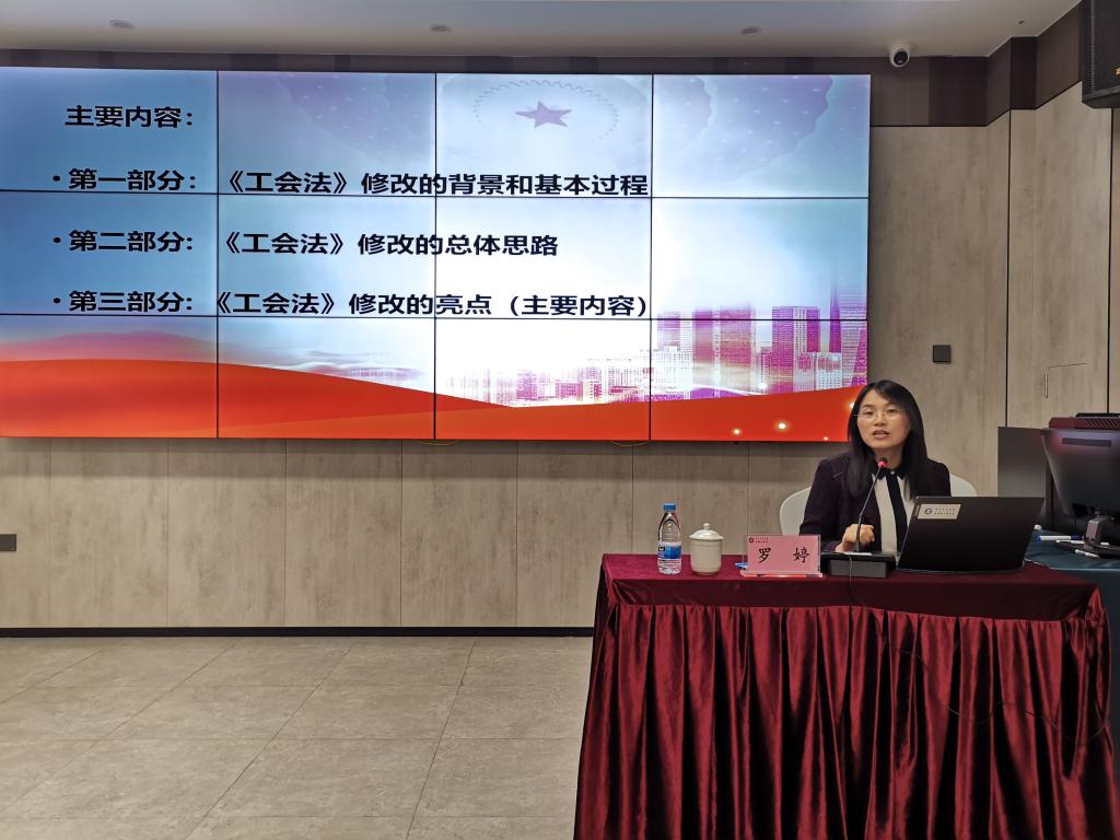 花都区总工会女职委委员、广州市总工会第十九次职工代表大会代表罗婷老师,就新《中华人民共和国工会法》修订解读及职工代表大会提案征集流程做了细致介绍,就基层工会常见的问题进行了解读。