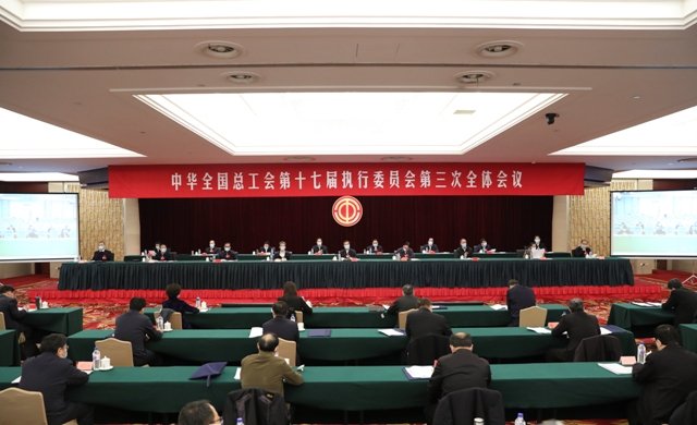 根据新冠肺炎疫情防控形势和当前工会工作需要,中华全国总工会第十七届执行委员会第三次全体会议4月10日以电视电话会议方式召开。会议传达学习了中央书记处在听取群团组织工作汇报后的重要指示精神,总结了2019年以来的工会工作,对2020年工作任务作出部署。全国人大常委会副委员长、中华全国总工会主席王东明主持会议并讲话。