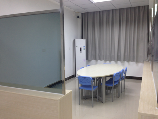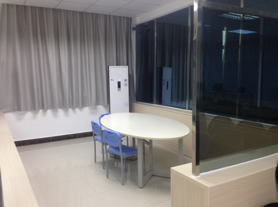 该实训室始建于2016年9月,主要特色在于有两个可以进行单独会谈的会议室,主要承担《招聘管理》、《商务谈判》等课程的实训,可以完成无领导小组讨论、结构化面试等面试模拟及绩效沟通、薪酬沟通等实训项目。