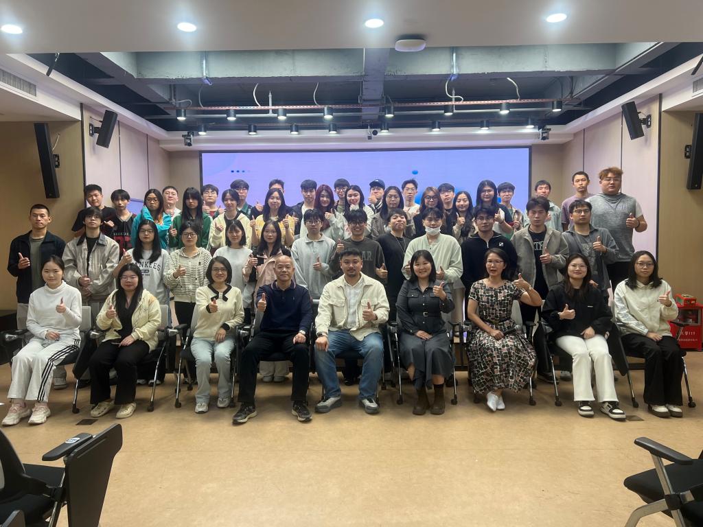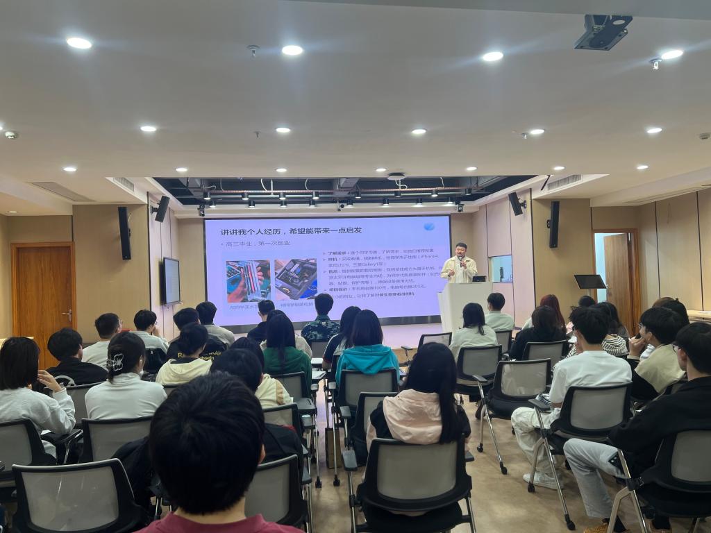 经过有序的行程安排,学子们顺利抵达广州长鹏光电科技有限公司。在企业工作人员的热情引导下,大家首先参与了专为本次走访而定制的专题讲座。公司副总经理林山围绕企业核心业务、行业发展趋势及创业核心经验进行分享,为同学们搭建起对企业及行业的整体认知框架,为后续的参观交流打下坚实基础。