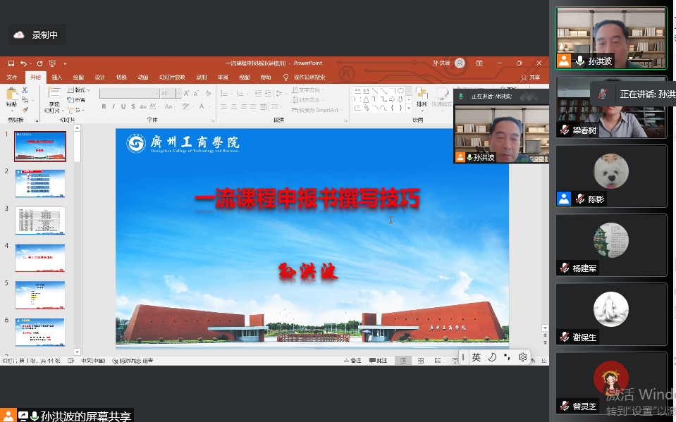 会上,孙洪波教授结合当前“双万计划建设背景及自身课程建设实践心得,分享了校级一流课程暨被推荐参评省级一流课程《组织行为学》建设的宝贵经验与做法。孙教授以目标为导向,立足申报书,从课程建设的必要性、课程简介、课程教学大纲、课程建设设计思路、教学视频录制、拓展资源建设计划、在线学习活动计划等七个方面详细讲解申报书撰写技巧。同时结合自身经验,深入剖析了在申报过程中遇到的各种问题,及解决技巧,勉励大家主动出击,迎难而上。