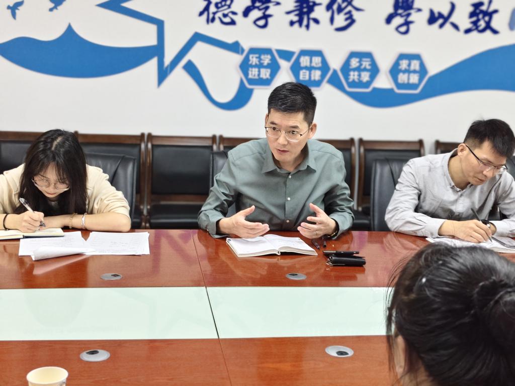会议伊始,2025届毕业班辅导员张永训老师首先就2025届毕业生就业工作的开展情况进行了全面、详实的汇报,她详细梳理了上一届毕业生就业工作的主要举措、遇到的挑战以及积累的宝贵经验,同时结合具体案例分享了在就业指导、岗位推荐、心理疏导、生涯规划等方面的实践心得,为2026届毕业班辅导员提供了可参考、可操作的工作指南。办公室主任陈海松就如何拓展就业渠道、优化就业服务着重指出,企业宣讲会是毕业生获取优质就业信息的关键平台,必须高度重视企业宣讲会的组织与对接工作,加大宣传力度。他强调,对于学校就业指导中心等官方平台推送的企业招聘信息和宣讲会动态,务必做到第一时间接收、第一时间筛选、第一时间精准传达至每一位相关毕业生,确保信息渠道畅通无阻,助力毕业生抓住最佳求职时机。