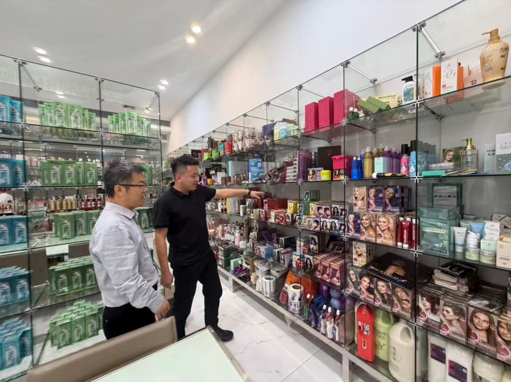 在诗得丽公司相关负责人的陪同下,乔鹏亮院长一行参观了企业的研发中心、学生实习实训直播基地、智能仓储物流系统及新零售场景展示区,详细了解了诗得丽在品牌建设、数字化营销、供应链管理及消费者体验创新等方面的实践成果。随后,双方就美妆新零售领域的人才需求特征、校企协同育人模式、实战型课程开发以及未来合作方向等议题进行了深入的座谈交流。