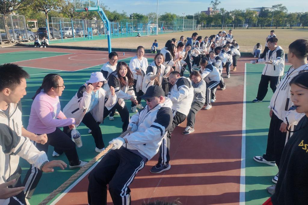 拔河比赛更是将氛围推向高潮,开始的刹那,上场的教职工们同时沉腰蹬腿,麻绳瞬间绷紧成拉满的弓弦。后排成员脚掌扣住地面,手臂青筋微鼓却始终没松劲,红标在中线两侧拉锯时,有人喉间低呵着节奏,直到红标猛地划过己方河界,众人仍攥着绳不肯松懈。各队队员紧握长绳、齐心协力,呐喊声、加油声震耳欲聋,充分彰显了管理学院教职工顽强拼搏的精神风貌。