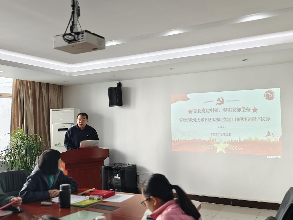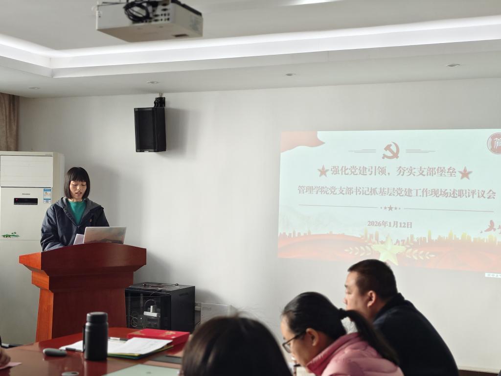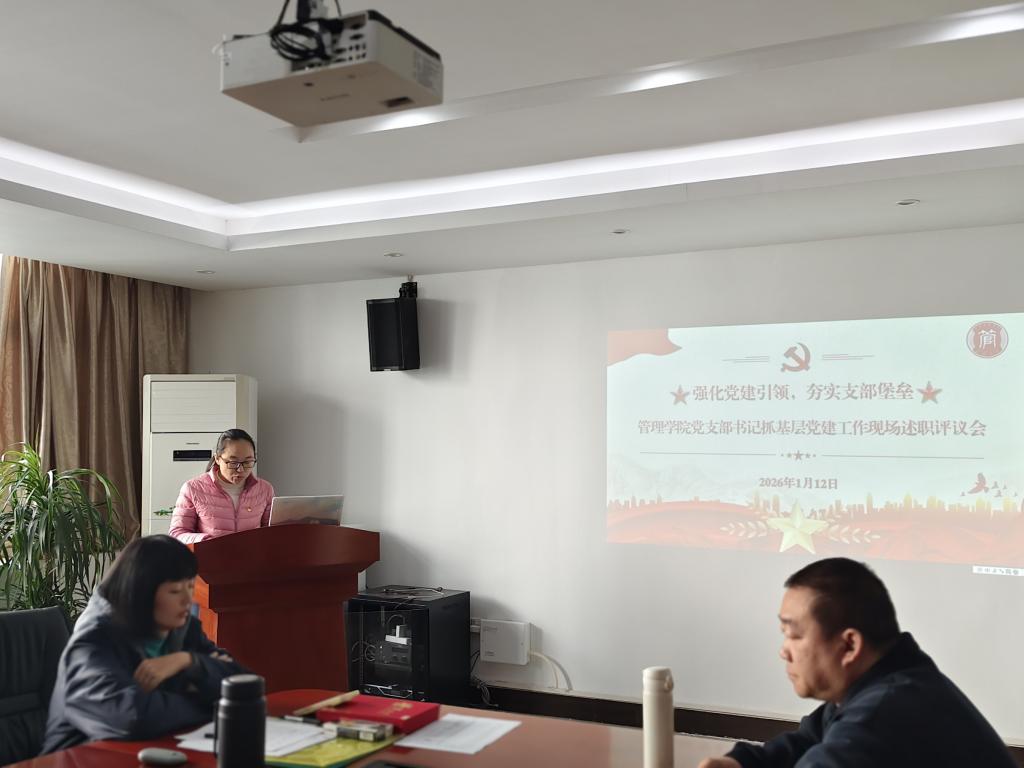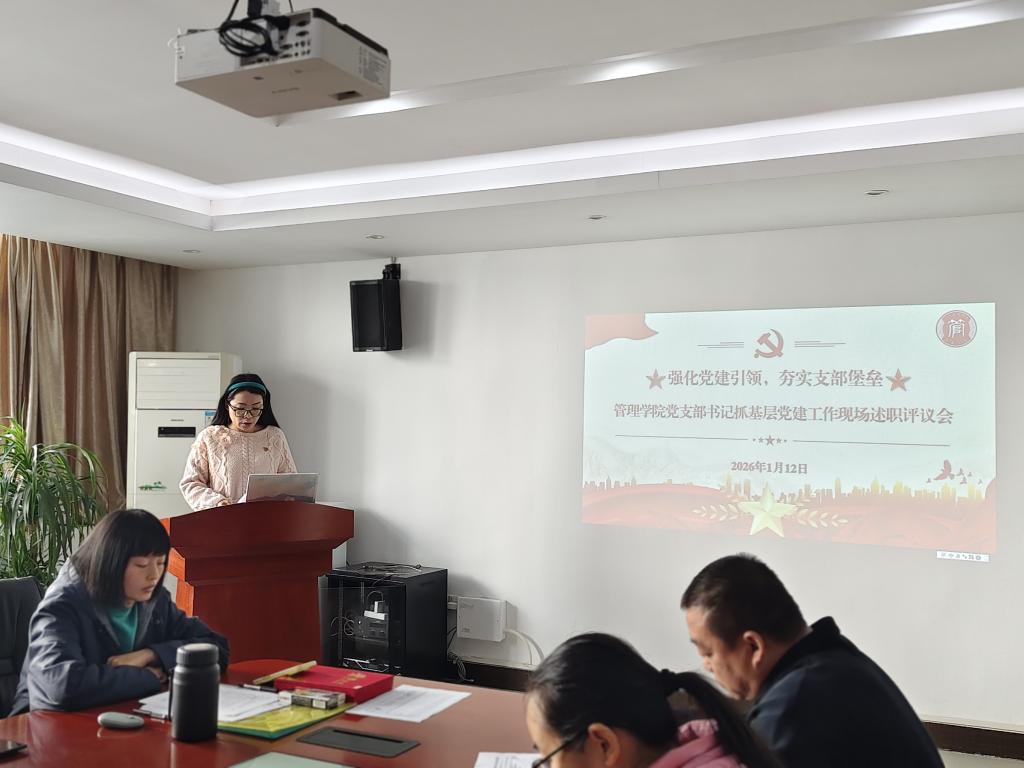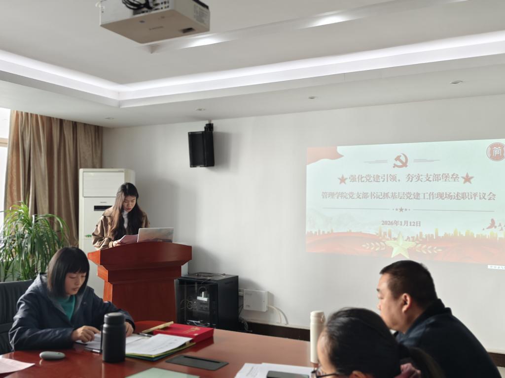 【本网讯】为深入贯彻落实新时代党的建设总要求,压实基层党组织书记抓党建“第一责任人”职责,全面检验过去一年各党支部工作成效,谋划新一年学院党建工作蓝图,2026年1月13日,管理学院党委在三水校区院部楼612会议室召开了2025年度党组织书记抓党建述职评议会。管理学院党委书记乔鹏亮、党委副书记赵小锋出席会议,其他党委委员、学院各党支部书记、委员及党员代表与会。会议由党委副书记赵小锋主持,8位党支部书记依次进行现场述职,全面“晒”出年度“成绩单”,接受组织评议。