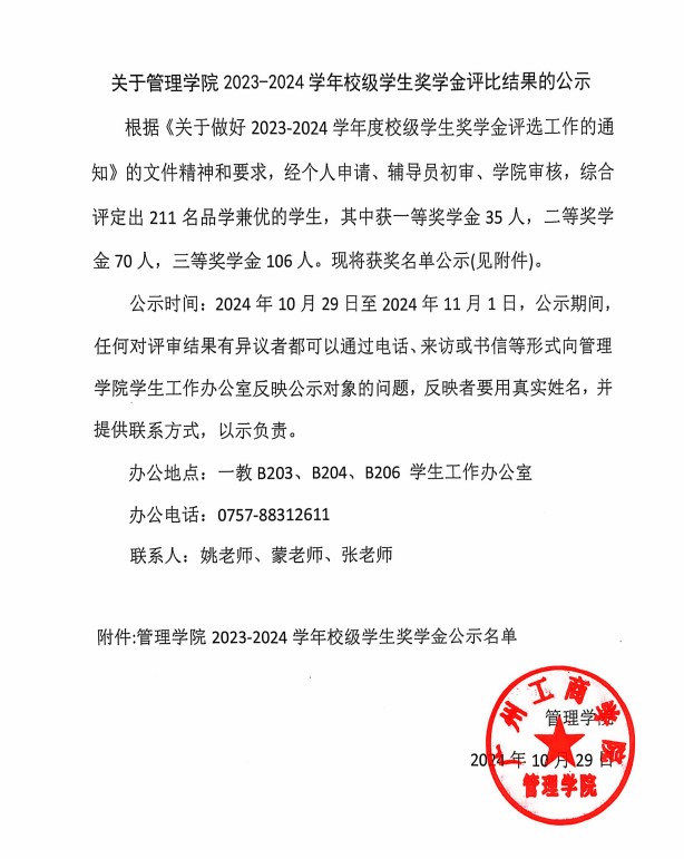 管理学院2023-2024学年校级学生奖学金名单公示