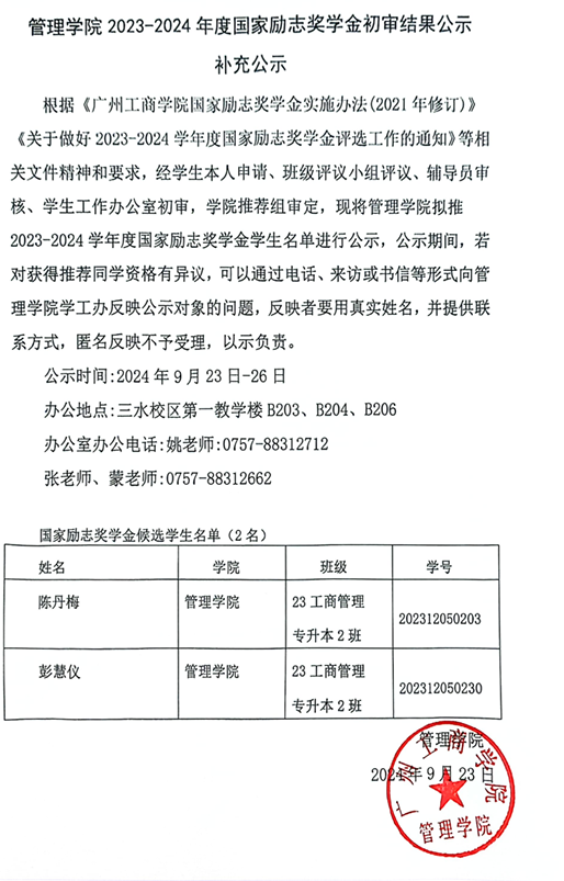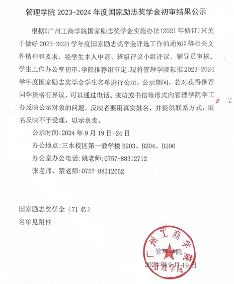 上一篇:2023-2024学年管理学院拟推荐参评国家奖学金公开评选名单公示
