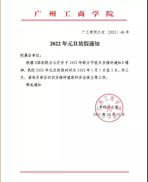 关于2022年元旦放假通知