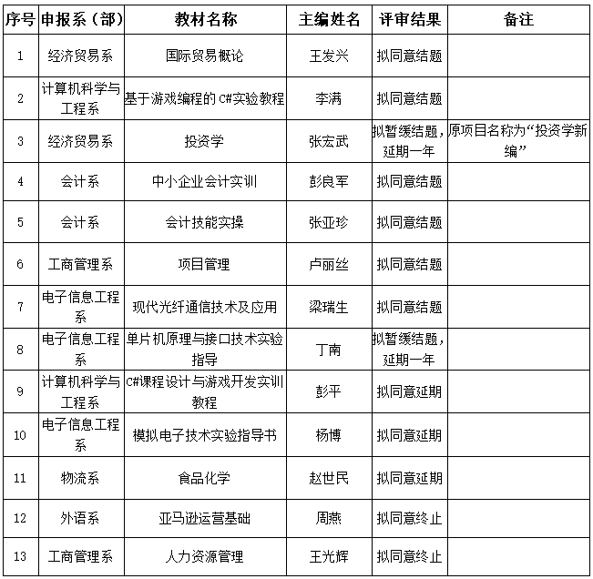 经项目负责人申请、所在单位审核推荐、教务处形式审查、课程建设委员会评审,呈报院长办公会审定,现将评审结果(附件)予以公示。