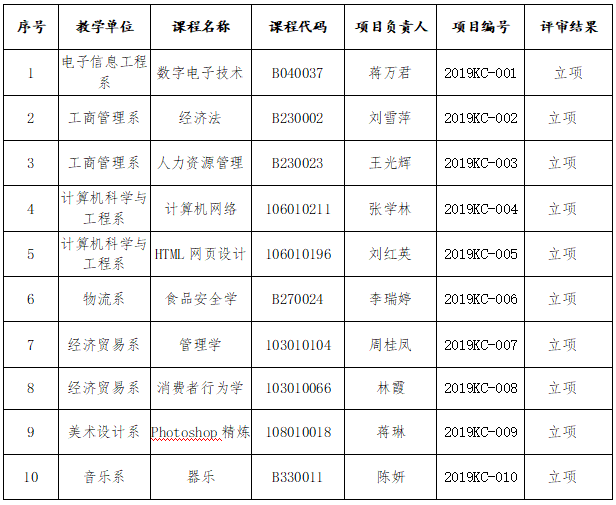 附件:1.2019年校级重点课程建设项目立项评审结果