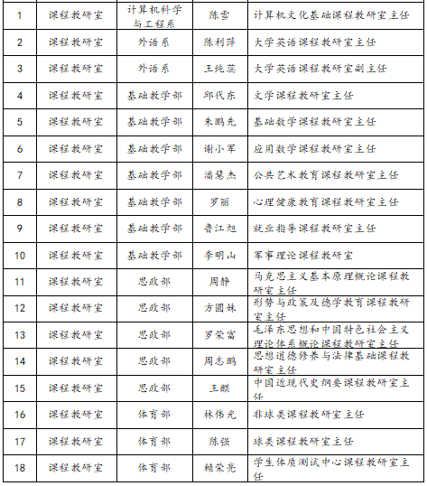 附件:2019年新一轮教研室(副)主任选聘名单