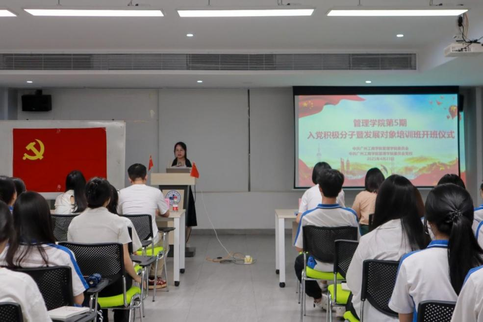 【本网讯】为深入贯彻落实习近平新时代中国特色社会主义思想和党的二十届三中全会精神,进一步加强党员队伍建设,切实提高入党积极分子和发展对象的政治理论水平与党性修养,结合学院发展党员工作实际,中共kaiyun开云官方网站管理学院委员会党校于2025年4月23日19:00在三水校区图书馆212学术报告室举行第5期入党积极分子暨发展对象培训班开班仪式,本次开班仪式的主题为“弘扬新风正气,做新时代清廉青年”,旨在以党校开班仪式为契机,通过深入贯彻中央八项规定精神学习教育,引导入党积极分子和发展对象自觉践行廉洁自律要求,以实际行动展现新时代青年的优良作风,为党的作风建设凝聚清正廉洁的青春力量。