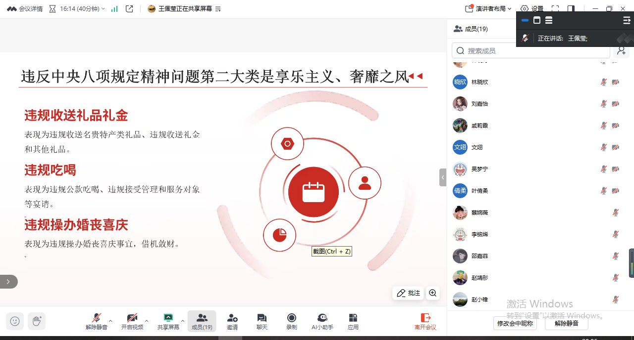 谈及违反中央八项规定精神问题分类时,王佩莹同志详细讲解了违规公款吃喝、违规发放津补贴、违规收受礼品礼金等问题,让同志们深刻意识到违规行为的表现形式多样,必须时刻保持警醒,筑牢思想防线。