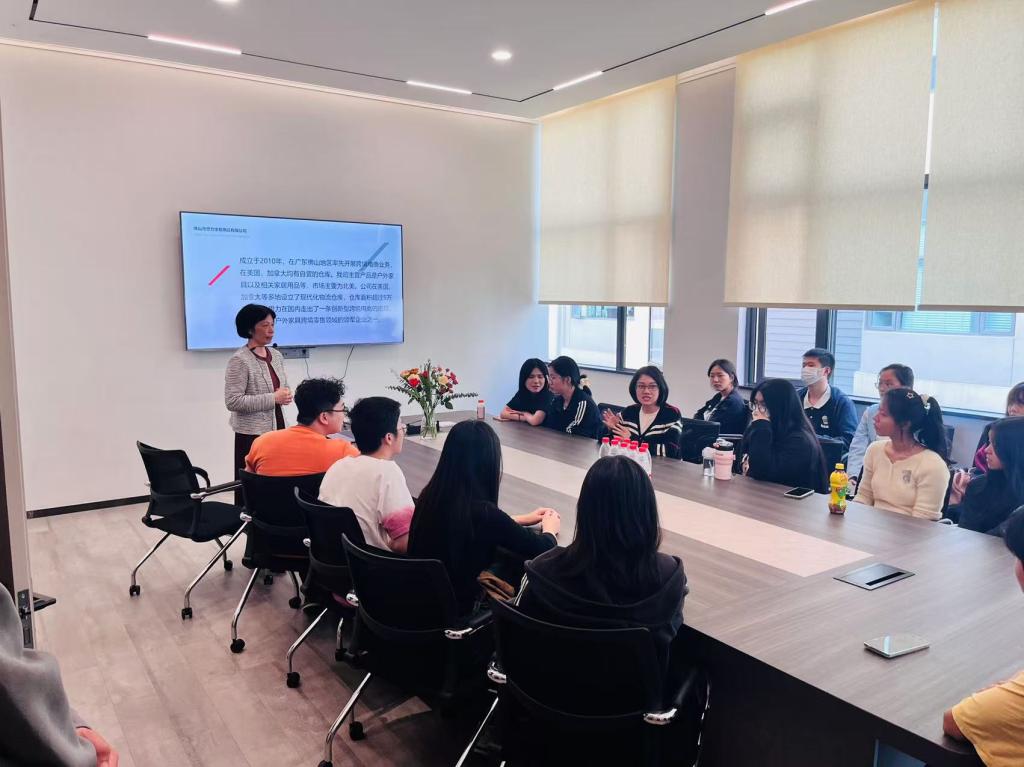 随后,公司负责人潘总在会议室热情地为学生们介绍了公司的主要业务及发展历程。同学们全神贯注地聆听,不时低头记录重点内容。