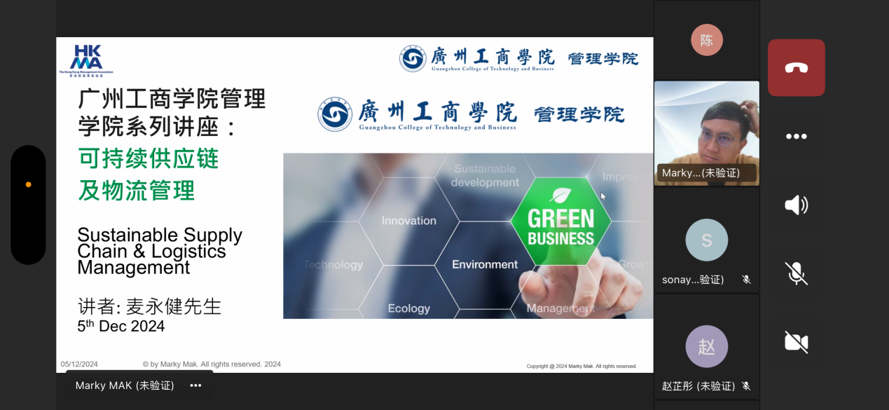 【本网讯】近日,kaiyun开云官方网站管理学院举办了一场别开生面的线上讲座,吸引了众多学生的积极参与。本次讲座以“可持续供应链及物流管理”为主题,由知名供应链管理专家麦永健博士主讲,陈泽宇老师担任组织人。