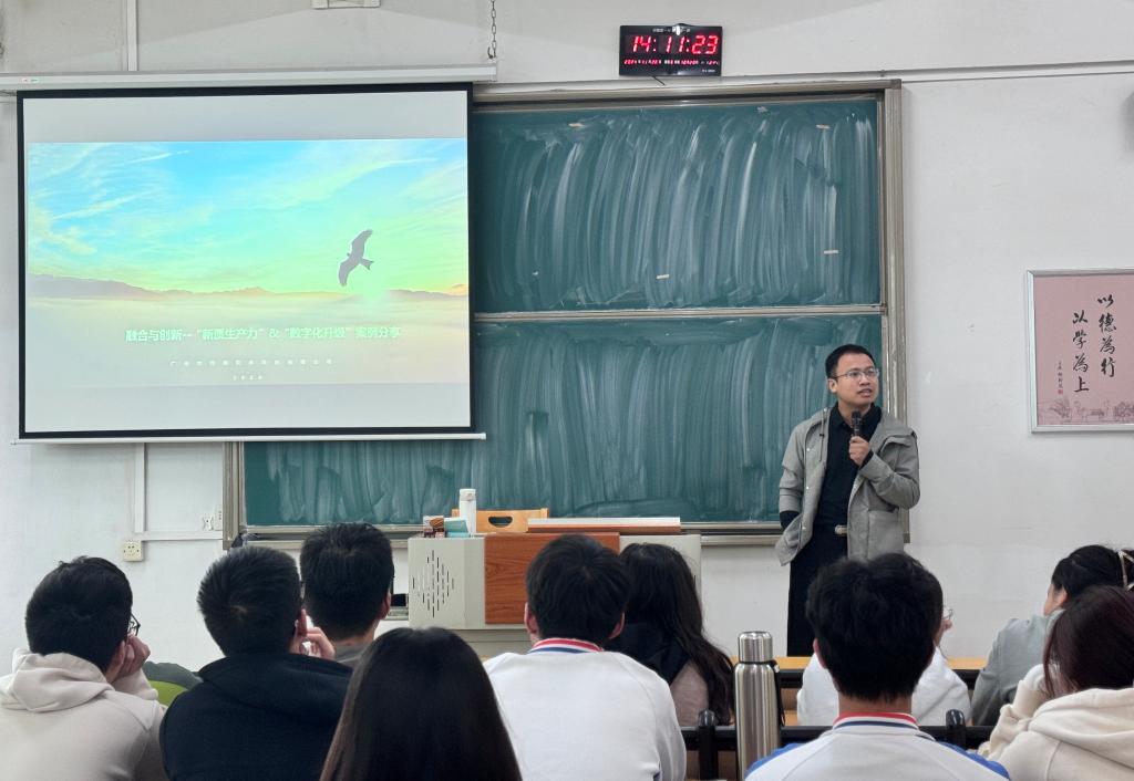 (陈行先生为学生介绍数字化与新质生产力的时代背景)