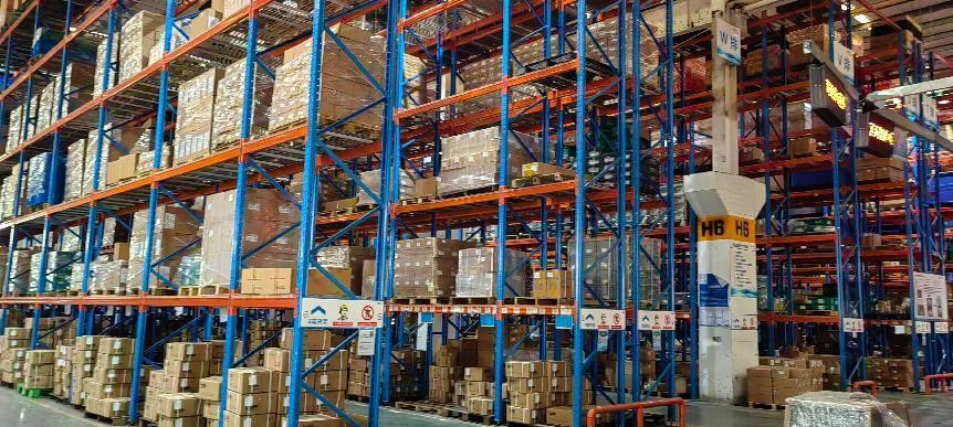 参加本次实践活动的师生在广东骏都供应链公司大型智能化立体VMI仓库里合影留念。
