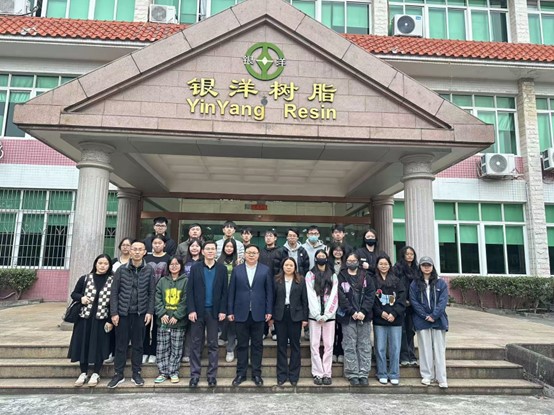 讲座结束后,吴总监还安排了相关的工作人员,带领师生们参观了银洋集团的产品研发生产过程。在车间里,同学们目睹了环保树脂材料的生产流程,了解了产品的质量控制和性能测试等环节。他们还参观了银洋集团的产品展示区,对银洋集团的产品有了更直观的认识。