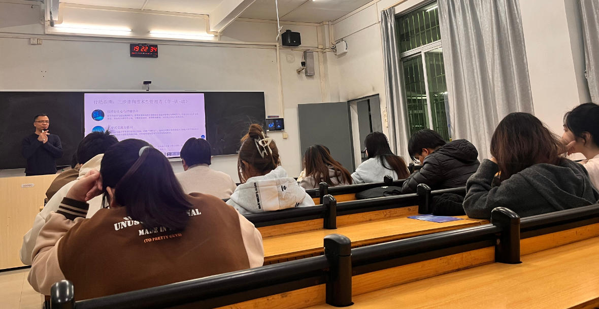 【本网讯】2025年11月20日晚7点,教1-A305教室开展了一场“懂技术的管理者,更有未来”的主题讲座。本次讲座特邀广州长鹏光电科技有限公司副总经理邹秀昌先生担任主讲人,其拥有10年智能软硬件信息化产品行业资深从业经历,深耕产品研发、产品战略管理、集成供应链管理、智能生产管理等领域,2020年至今在广州长鹏光电科技有限公司历任产品经理、产品总监、供应链总监、产品中心副总(负责智能硬件开发、供应链管理、生产管理)等核心岗位,实战经验丰富。讲座围绕“技术驱动时代领导力重塑”核心议题,结合多年行业实践,为现场观众解析技术浪潮下管理模式的变革方向、技术型管理者的核心优势与实践路径,带来兼具理论深度与实践价值的思想盛宴。