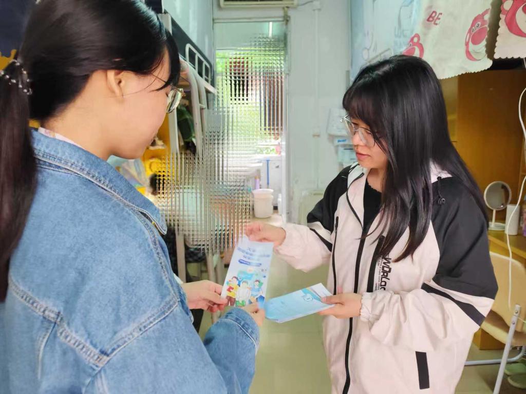 宿舍楼里,由谢丽星老师带领志愿者们进行走访,一边发放反诈控烟宣传手册,一边与同学们亲切交流。他们叮嘱大家在宿舍用电、网购的过程中提高警惕,谨防各类电信诈骗;同时呼吁大家互相监督,共同打造无烟宿舍,让清新空气萦绕在寝室的每一寸空间。同学们纷纷表示,会将学到的知识分享给室友,一起为营造安全健康的校园环境出力。