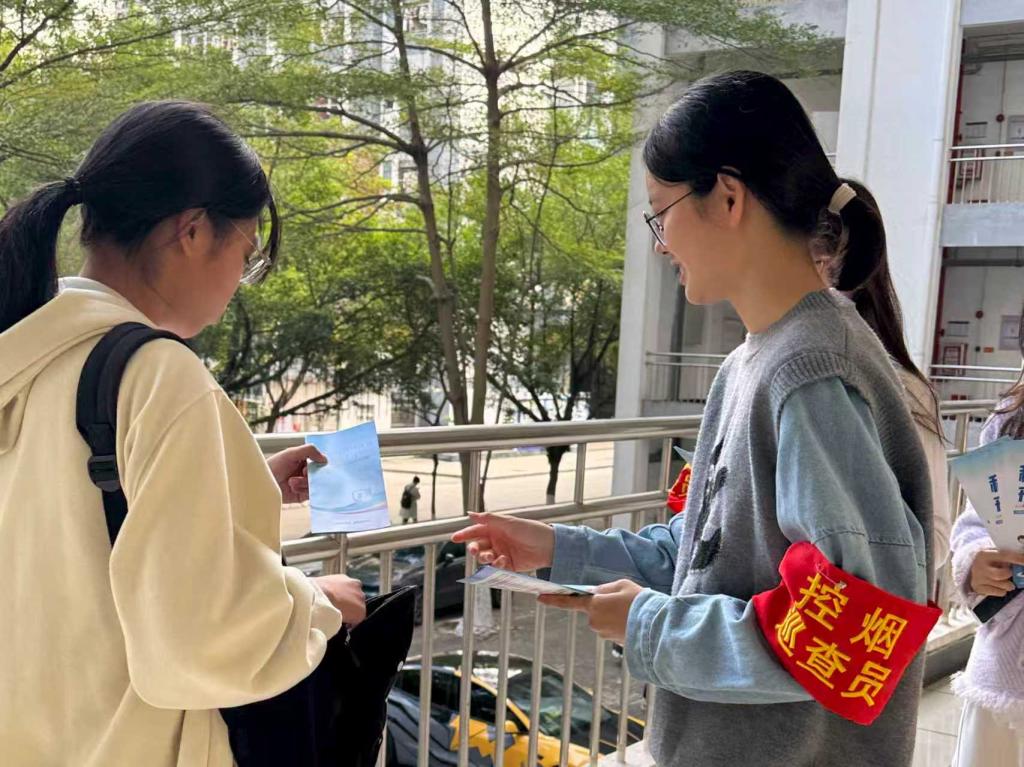 与此同时,控烟宣传也同步开展。志愿者们耐心普及烟草危害,不仅讲解吸烟对呼吸系统、心血管系统的直接损害,还着重提及二手烟、三手烟对身边同学和老师的健康威胁,号召大家主动远离烟草,选择健康的生活方式。路过的师生纷纷驻足,认真阅读传单内容,不少同学主动提问,现场互动氛围十分热烈。