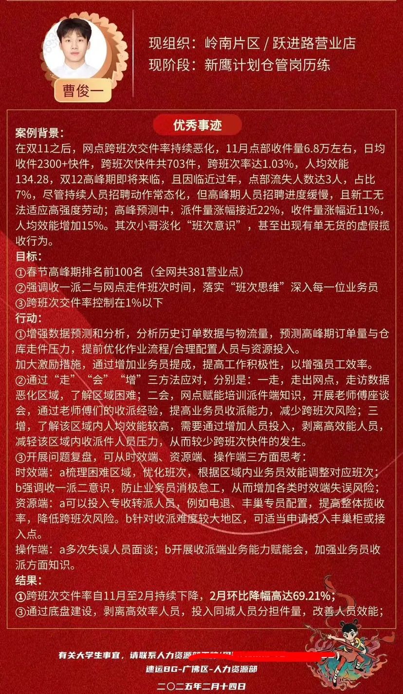 我在广州顺丰速运有限公司的实习是我求职过程中的一大亮点。在顺丰的实习过程中,我担任了经营管理岗(网点负责人)新鹰计划实习生,参与了业务员收派岗、仓管岗一二线基层工作,目前也担任人力资源岗助理等多个岗位轮值。在担任HR期间,我了解了如何在几百份简历中挑选较优秀的求职者。在与团队的紧密合作中,我学到了如何在快节奏的环境中高效管理资源,提升了我的问题解决能力和团队协作能力。此外,我还深入参与了物流信息系统的使用与优化工作,增强了自己在物流信息化管理方面的知识与实践能力。我的努力和表现得到了公司领导的认可,最终成功获得了顺丰速运的正式offer。