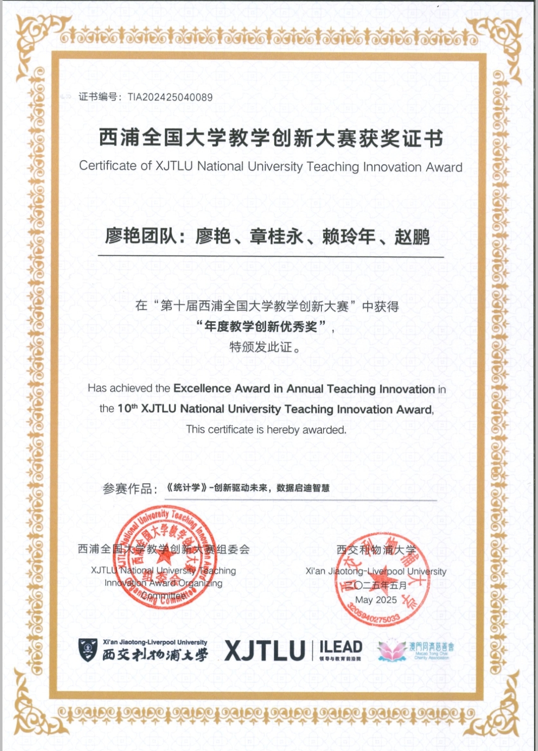 此次荣誉的获得,是管理学院持续推进教学改革创新、强化课程内涵建设的缩影。学院将以《统计学》课程为范例,进一步推广创新教学经验,助力学校高质量发展。
